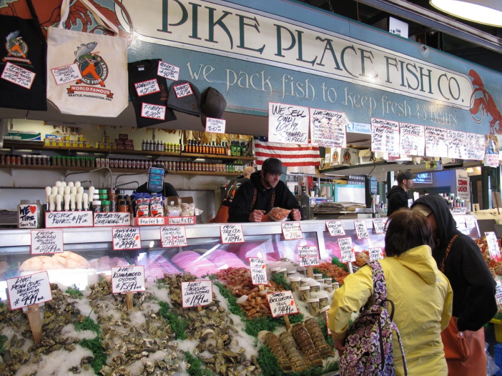 With the exception of my somewhat harrowing driving experience, my visit was quite enjoyable. The weather was great and I was able to score some very tasty treats at a really cool Whole Foods store. I also visited the Pike Place Fish Market, which was mobbed by tourists, but still worth the visit. Unfortunately, I wasn’t able to get a good photo of the fishmongers tossing fish back and forth. (When someone buys a fish, one of the fishmongers yells out the order and tosses the fish from the display stand to another fishmonger behind the counter who wraps it up and rings up the sale.) I even tried to talk a couple of onlookers into buying some king salmon but no dice. Maybe I’ll get that shot next time …