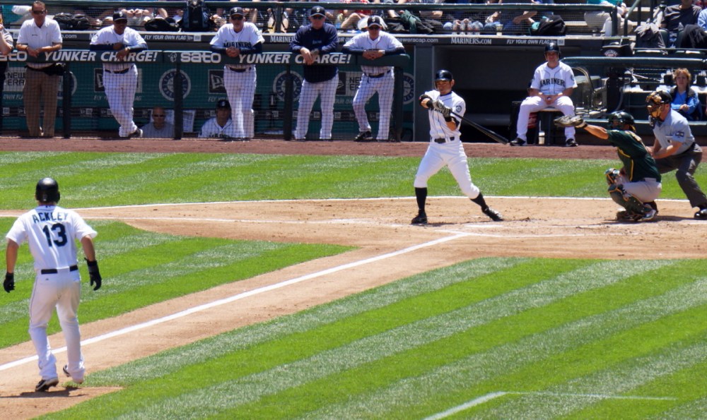 For its one-two-three strikes and you’re out … I wish I could say that the game I watched was an exciting event, but ’twas not the case. Oakland won the rather humdrum event by a score of two to one. The good news for the Mariners was that the Athletics had only two hits – the bad news was that both of these were home runs. While the Mariners had twice as many hits (four), only one of them scored a run. Unfortunately, Ichiro went hitless and struck out twice, both times with men in scoring positions. With his slap-hitting, drag-bunting style, you wouldn’t think someone of Ichiro’s skills would strike out twice, but getting some wood on a baseball that is being hurled at you at 95 miles an hour can not be an easy feat. One of the other Mariner players, Justin Smoak, who happens to be a fan favorite (apparently due in no small part to his home run power), is dawdling dangerously close to the dreaded “Mendoza Line”. Justin was also hitless and his batting average at the end of the game dropped to a tepid .202. Kevin Millwood, who was pitching a fine game, giving up only a first inning home run, left the game in the 3rd inning with a re-injured groin muscle. (Millwood had to leave a game earlier in the year against the Dodgers in the sixth inning – a game in which he was throwing a no-hitter – because of the same injury. Incidentally, the Mariner relief staff finished that game without allowing any hits, going on to complete their first combined no-hitter since 2003.)