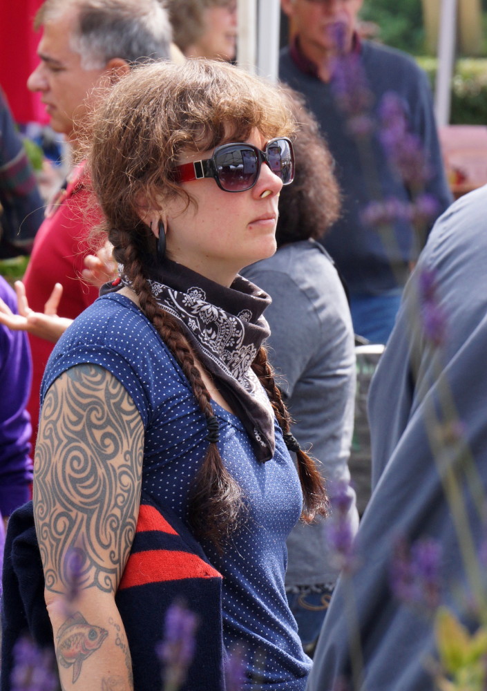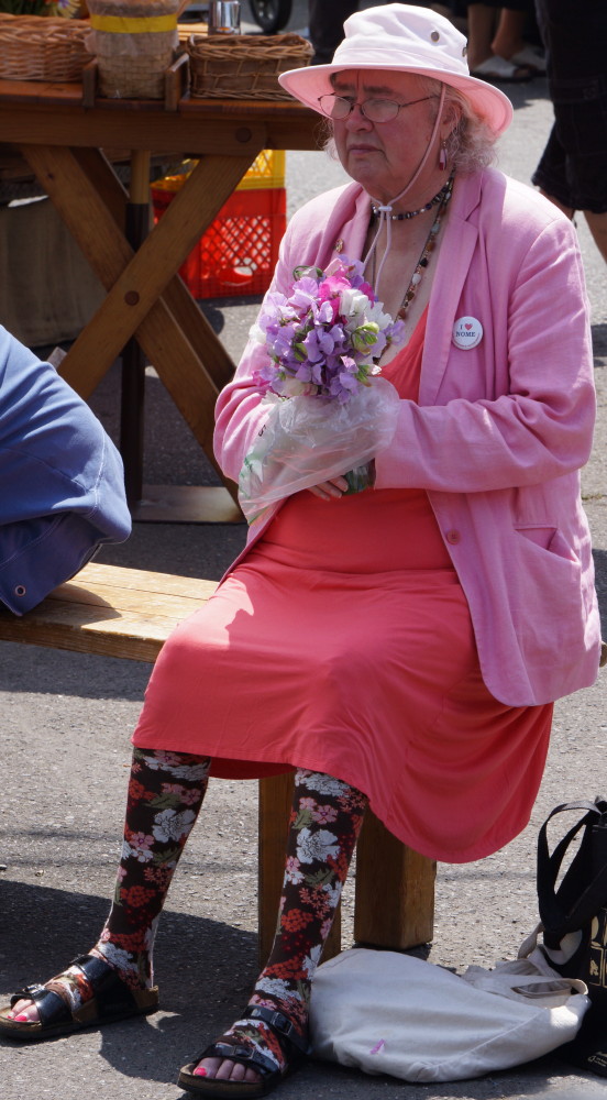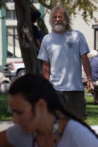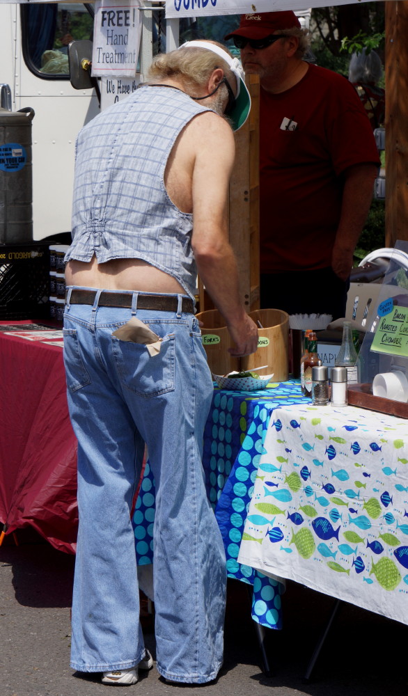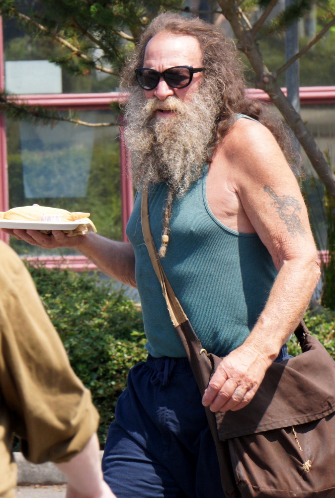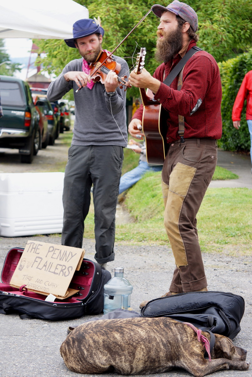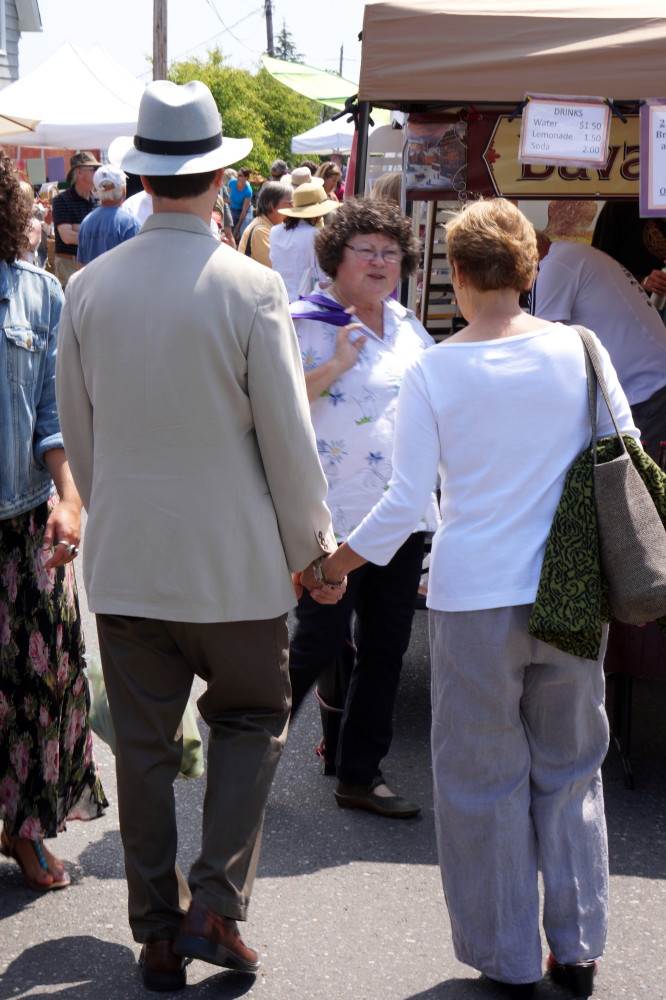 Port Townsend is located on the northern tip of the Olympic peninsula in Washington. The town itself is pretty small and like many small towns along the western coast, it has a distinct community character. A coastal town, Port Townsend has a long-standing history as a wooden ship building center. It is also a haven for old hippy types and has also attracted many nouveau riche former Californians and probably a smattering of ex-New Yorkers. In any event, the vast majority of its citizens are situated on the left-wing of the political spectrum and there’s an abundance of anti-war signs posted on flower-rich lawns throughout the community. Wander around town and one will notice lots of pony tails – and I”m referring to males. There’s many long-haired women as well but I have noticed that most of them don’t wear pony tails. PT also has a thriving organic and fresh food market and not surprisingly, it has a very popular food COOP in the middle of town. One of the major ongoing events in town is the Saturday Farmers Market. Aside from the interesting local fresh food and the usual fare of arts and crafts being peddled by the merchants, the market is a mecca for characters of all types. It’s a day when young and old can dress as funky as they desire and yet simply blend in with the crowd. Unfortunately, it’s also a day when most everybody in town with a dog shows up. If the space where the market was held was much larger, the mass of mutts wouldn’t be so bad; unfortunately that’s not the case and dogs and people are scrambled together in a hodgepodge. Fortunately, most of the mutts get along but every now and then a growling match develops between a couple of alpha canines….