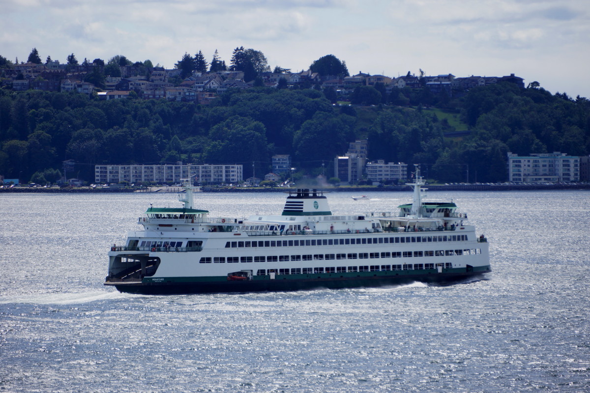 After being in Port Townsend for nearly two months, I hadn’t been to Seattle since A&C took me along with them on one of their apartment scouting trips back in early May. Since I had wanted to check out some of the neighborhoods and apartments myself, I finally just picked a day with a good weather forecast and drove the car to Bainbridge Island (an hour from PT) and then took the ferry to downtown Seattle. Because of the cost of taking the car on the ferry (~$26 round trip), many people opt for the passenger – only option ($4 round trip) instead. Since I wanted to drive around through some of the neighborhoods, I took the car – a fact that I regretted not soon after arriving in Seattle. The ferry ride from Bainbridge is about thirty minutes long and makes for a very pleasant experience, especially when the weather is nice. You can stay in your car if you’d like (which you can’t do on the ferry ride from Port Angeles to Victoria, a ninety minute trip, over “open” waters for part of the journey), or you can find a comfortable seat inside the ferry’s passenger section and read the paper or amuse yourself with your iPad, or you can stroll along the deck and enjoy the views and crisp cool harbor breezes.